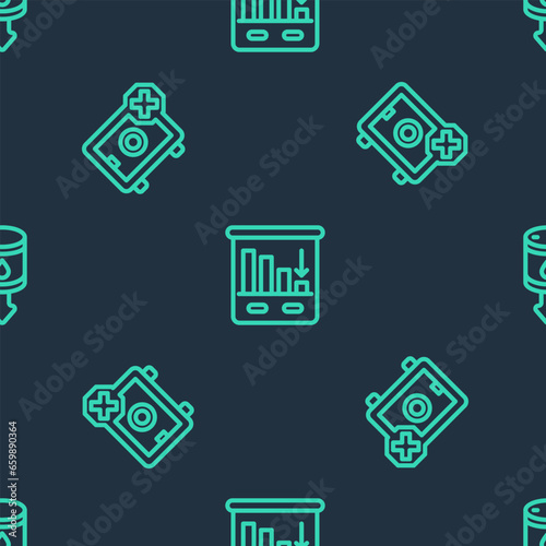 Set line Pie chart infographic, Safe and Drop crude oil price on seamless pattern. Vector