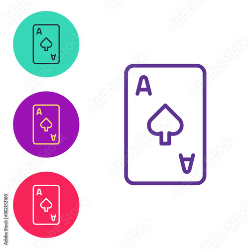 Set line Playing card with spades symbol icon isolated on white background. Casino gambling. Set icons colorful. Vector
