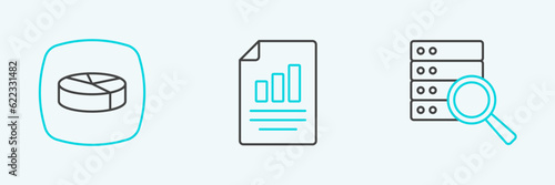 Set line Server, Pie chart infographic and Document with icon. Vector