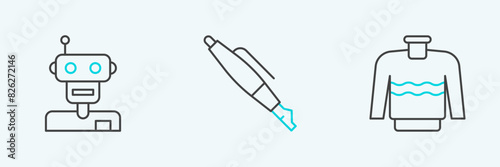 Set line Sweater, Robot and Fountain pen nib icon. Vector