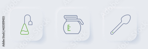 Set line Teaspoon, Coffee pot and bag icon. Vector