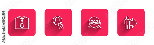Set line Tie, Worker, Project team base and Leader of of executives with long shadow. Red square button. Vector