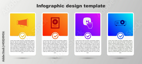 Set Megaphone, CD disk award in frame, Online play video and Movie, film, media projector. Business infographic template. Vector