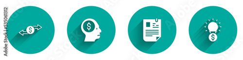 Set Money exchange, Business man planning mind, Resume and Light bulb with dollar icon with long shadow. Vector
