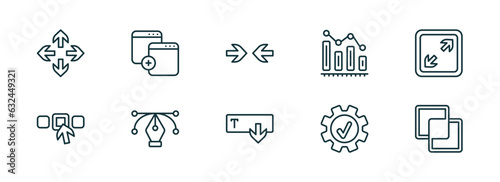 set of 10 linear icons from user interface concept. outline icons such as move arrows, new page, opposition, text out, right tings, intersect vector
