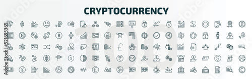 set of 100 special lineal cryptocurrency icons set. outline icons such as proof of stake, digital key, online banking, saving, as, , card, vga card, economy line