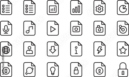 Set of 20 minimalist outline icons on white background