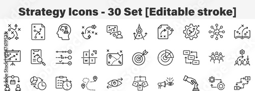 Set of 30 outline strategy icons. Line art icon collection. Editable stroke. Vector illustration