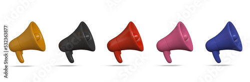 Set of 3d cartoon megaphones loudspeaker on transparent background.