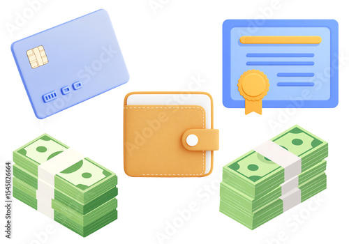 Set of 3d icons about internet shopping finance and payments isolated on white background