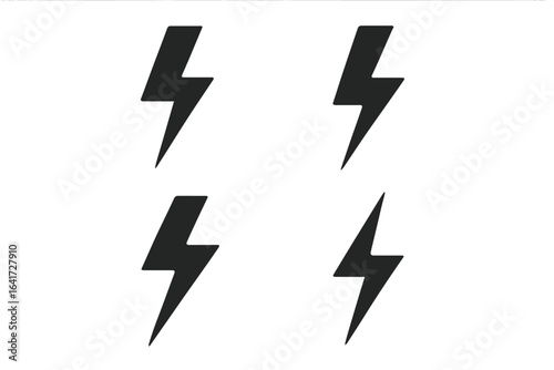 Set of 4 Black Lightning Bolt Icons, Energy Symbols, Electric Charge Flat Vector Illustration, Power and Voltage Design Elements on Transparent Background