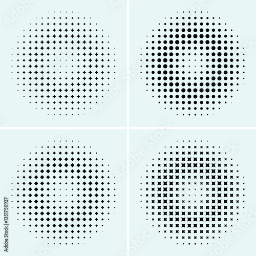 Set Of 4 Halftone Dot Pattern Variations Vector Illustraton