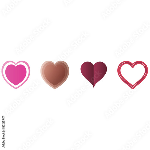 Set of 4 pink, red heart icons, simple vector cartoon doodle style illustration elements for product or web design.