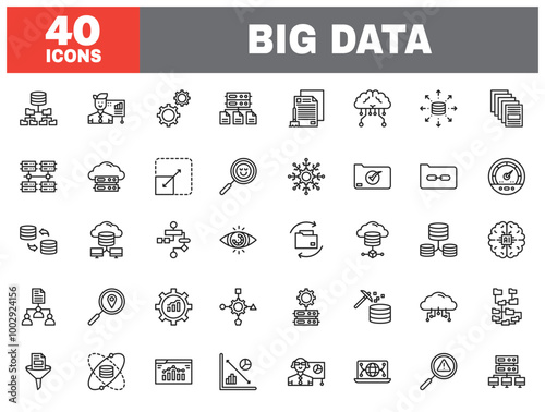 Set of 40 line icons big data. Outline icon collection. Editable stroke. Vector illustration.