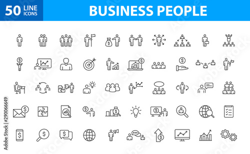 Set of 50 Teamwork web icons in line style. Team Work, people, support, business. Vector illustration.