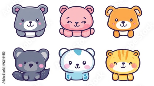 Set of 6 Cute Kawaii Animal Avatars on White Background. Each Avatar Features a Unique, Adorable Design in Vector Style, Perfect for Fun and Playful Representations