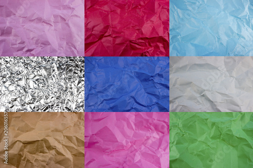 Set of 9 Crumpled torn color papers. Template for banners. Empty space for text and design