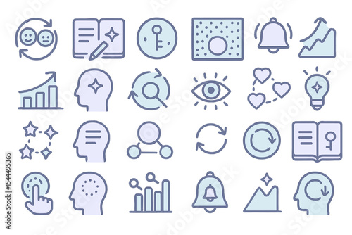 Set of abstract icons for concepts like growth, feedback, and data analysis.