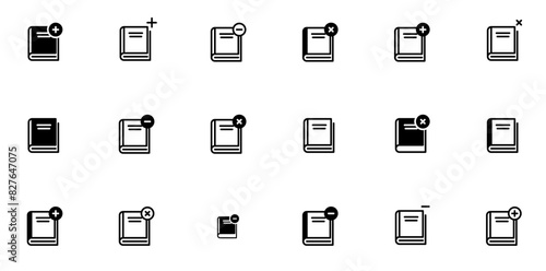 Set Of Add Remove Dictionary Isolated Silhouette Solid Icons With Add,Delete-Dictionary,Book,Dictionary,Add-Dictionary Simple Black Style Symbol Sign For Apps And Website, Vector Illustration