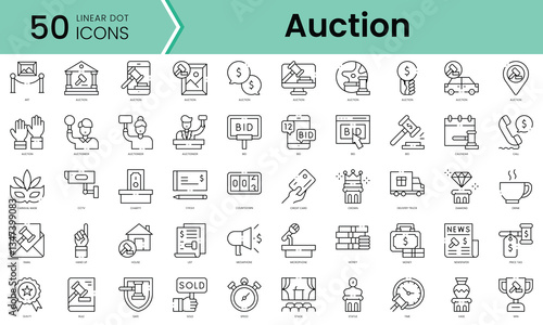 Set of auction icons. Line art style icons bundle. vector illustration