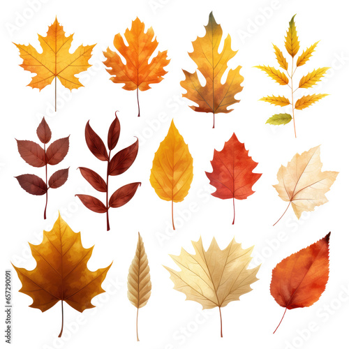 Set of autumn leaves abstract color on transparent background.