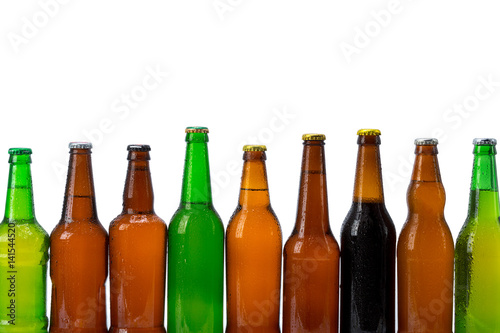Set of beer bottles isolated