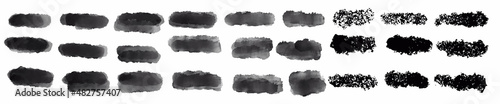 Set of black brush, paint, ink brush strokes, brushes, lines. Dirty artistic design elements. Vector illustration. Isolated on white background.