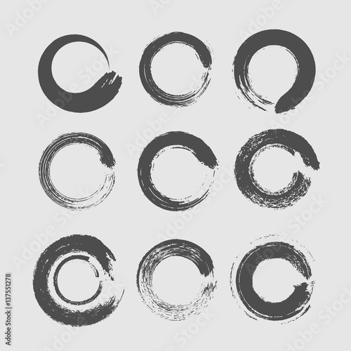 Set of Black Grunge Circle Stains, Shapes. Vector illustration. Hand Drawn Ink Circles Collection.