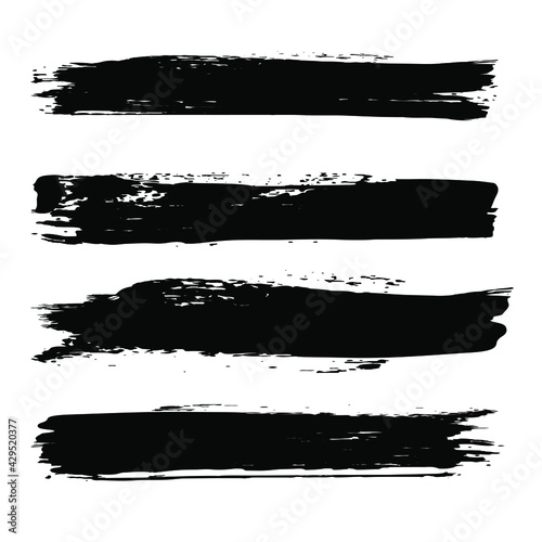 Set of black grunge paint stripes. Vector dry brush stroke. Distressed textured banner. Black paintbrush collection. Dirty artistic design element. Modern border shapes