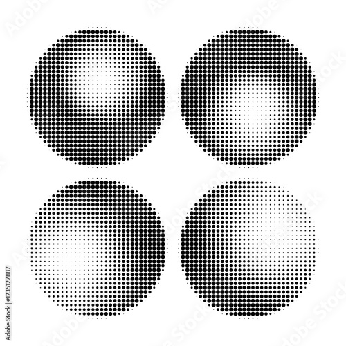 Set of black halftone dots backgrounds. Halftone dot abstract background. Vector format