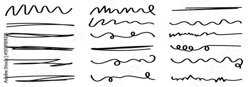 Set of black hand drawn marker pen stroke line. vector illustration on white background.