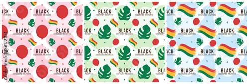 Set of Black History Month Seamless Pattern of African American Holiday in Template Hand Drawn Cartoon Flat Design Illustration