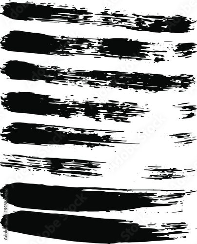 Set of black ink horizontal hand drawn brushes. Abstract isolated grunge lines, or stripes. Vector illustration.