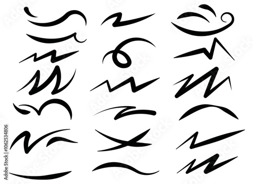 Set of brushes created with technical tools. Formed by arcs, lines and circles with different thicknesses