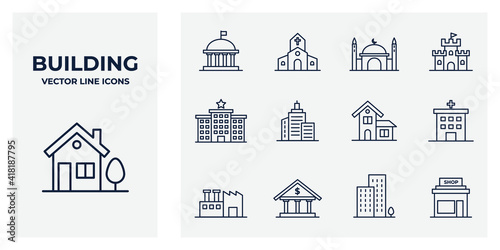 Set of Building icon. Building pack symbol template for graphic and web design collection logo vector illustration