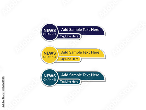 Set of bundle lower third vector design banner with three color shape overlay strip text video.