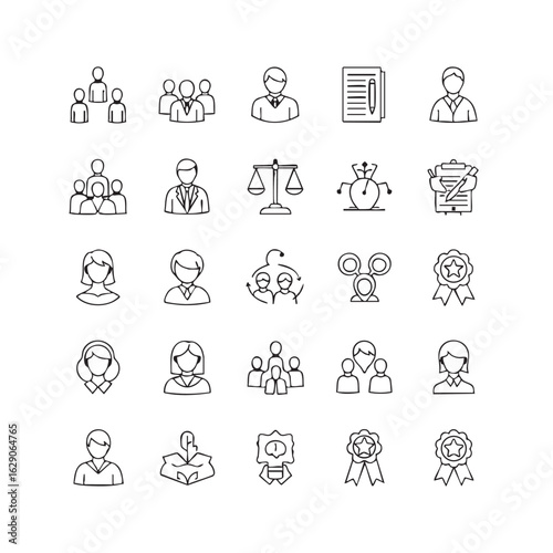 Set of Business and Management Icons in Outline Style Including Teamwork Leadership and Strategy Development for Corporate Success