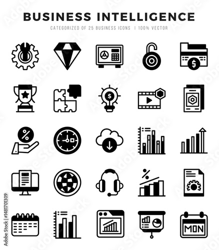 Set of Business Intelligence Icons Lineal Filled icons collection.