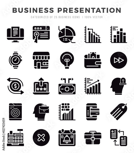 Set of Business Presentation Icons Glyph icons collection.