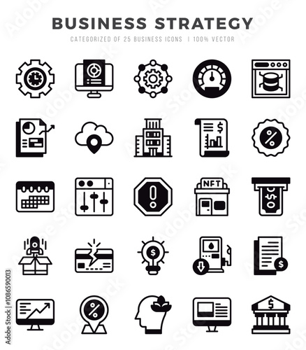 Set of Business Strategy Icons. Simple Lineal Filled art style icons pack.