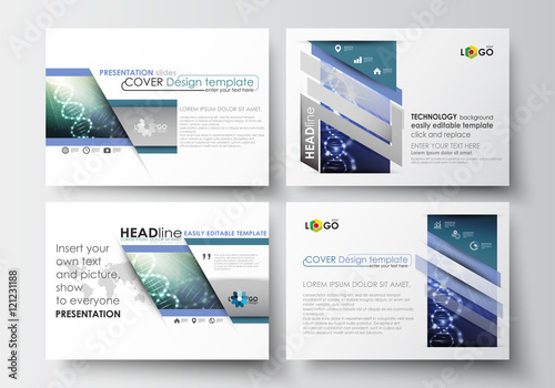 Set of business templates for presentation slides. Easy editable abstract layouts in flat design. DNA molecule structure, science background. Scientific research, medical technology