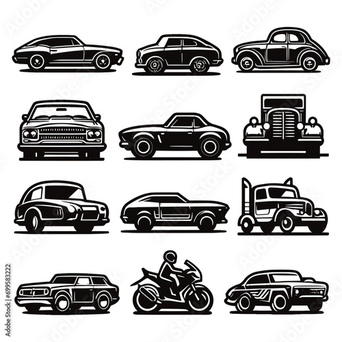 Set of car silhouettes isolated on a white background, Vector illustration.