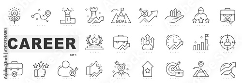 Set of career related line icons. Business, success, arrow, goal etc. Editable stroke