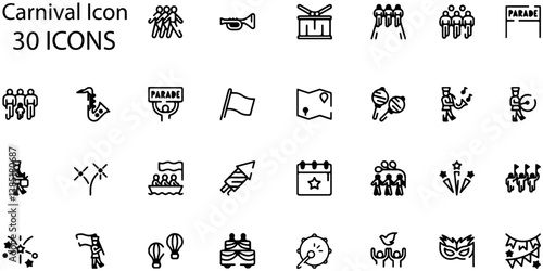Set of Carnival icons. Line art style icons bundle. vector illustration
