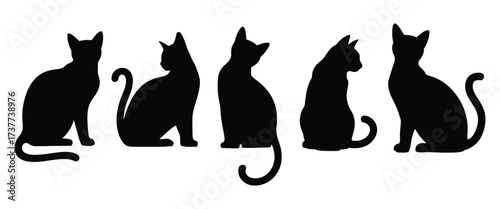 Set of Cat Silhouette Vectors Isolated on White Background – Minimalistic Black Cat Icons, Various Poses and Shapes for Design, Illustration, and Creative Projects