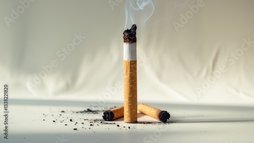 Set of cigarette remnants isolated on a white backdrop