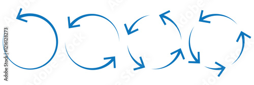 Set of circle arrow vector icons. Recycling icon. Circular vector arrows. Refresh and reload arrow icon. Arrows flat sign. Repeat cycle symbol. Infographic isolated on white background