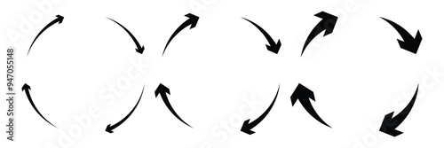 Set of circle arrows icon. Round reload sign. Circular rotation loading elements.