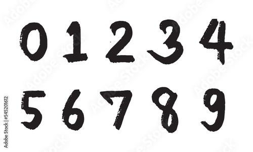 Set of collection number alphabet hand drawn with ink, grunge, brush for decoration, drawing, element, writing
