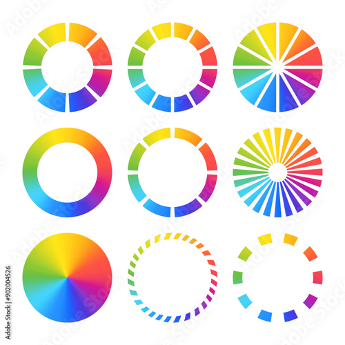 Set of color wheels with bright palettes. Round color charts. Gradient circles. Vector illustration for your design